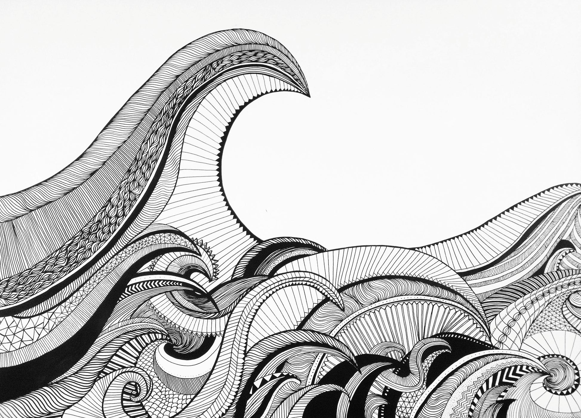 A drawing in honor the sea. I made the original one with black ink on large canvas. I scanned and now I can reproduce it digitally in small format.