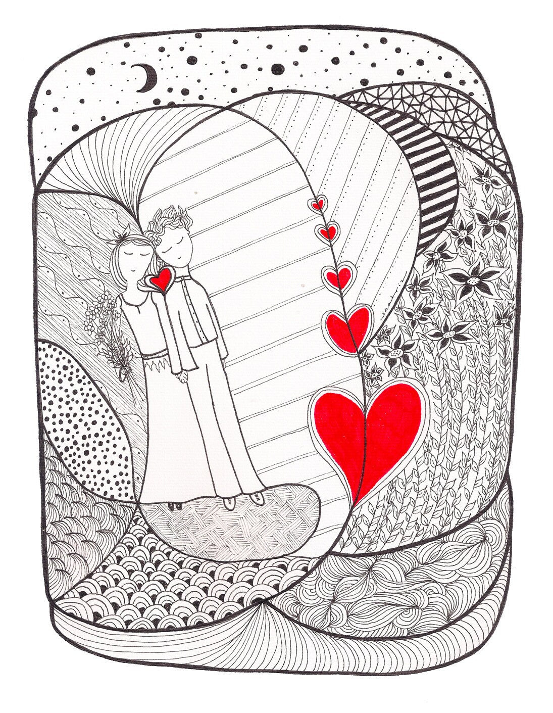 This is a print of my original drawing. Ideal gift for friends, for a wedding, anniversary or a special occasion. Ideal wall decoration.