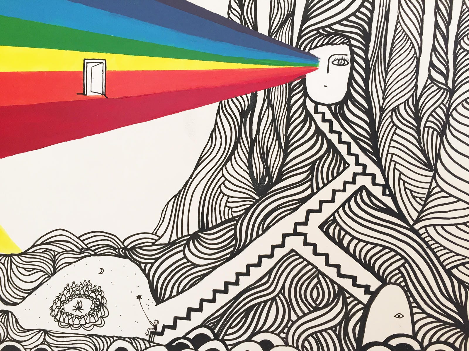 TECHNIQUE: I worked using acrylic paint and black ink on canvas. I added a varnish layer to preserve.