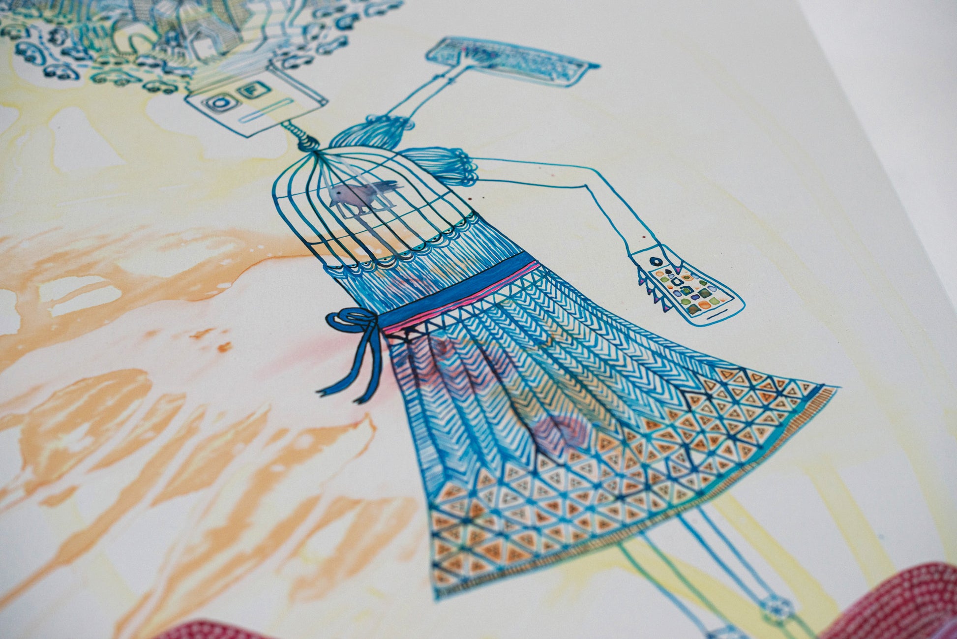 TECHNIQUE: I worked using acrylic paint and ink on canvas. I added a varnish layer to preserve.
